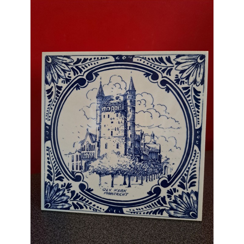 Delfts blauw handgeschilderd tegeltjeVoorstelling: Vrijthof MaastrichtAfmeting: 15 x 15 cm